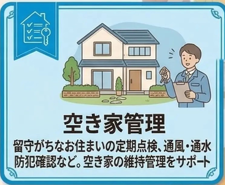 自宅、空き家長期不在にされるお宅の定期的な管理を承ります。